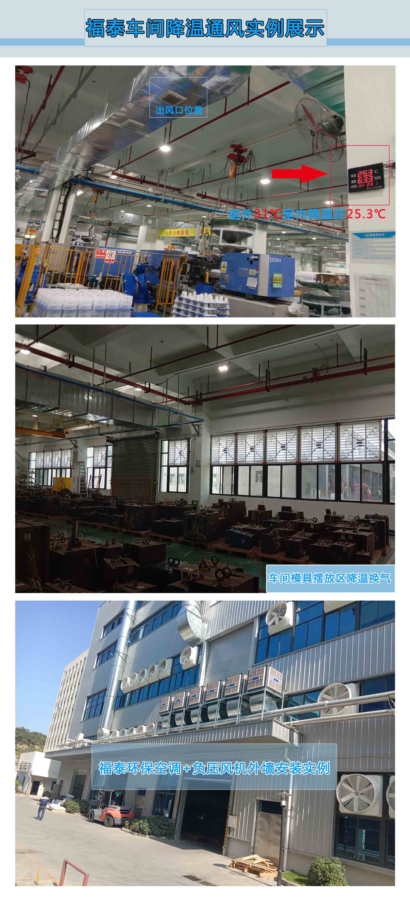 也有很多老板說用中央空調解決不了他們車間的根本問題,而且中央空調前期投入費用和使用費用以及后期的維護費用都讓很多老板望而卻步,今天你看到這篇文字時候就能趕上福泰的優惠活動買上適合你車間的真正降溫設備為員工改善環境,不僅少花錢少投資,使用最省錢的廠房降溫環??照{,給車間舒適鮮風、換氣、降溫通風通通搞定全部問題。