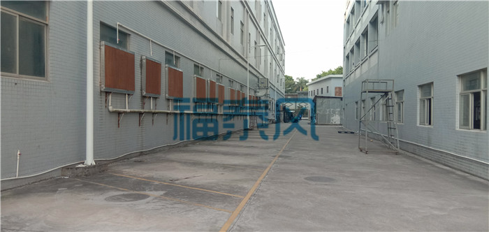 3.環??照{,對車間外空氣降溫后送入車間內降溫。車間外墻上安裝環??照{,它是通過風機往車間內送風,室外的新鮮空氣流經浸水的濕簾后空氣與水份充分接觸同時吸收空氣重點中的顯熱,從而達到降溫、換氣、除塵、增加車間內空氣含氧量的目的,這個方案特別適用于高溫及人群密集場所。